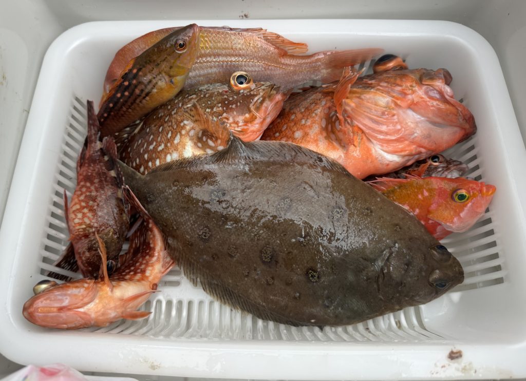 釣種:ガシラ(37.5cm) オニカサゴ カレイ(31cm) ソイ(43cm) メバル 沖メバル レンコダイ アマダイ(30cm) 他