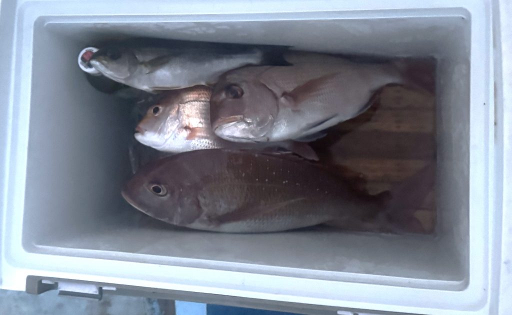 2024年10月14日 / 最終更新日時 : 2024年10月14日 k-arafune 釣果 10月13日 釣果 場所:若狭湾 船:長幸丸 漁生丸 参加人数:8人 クラブ以外:1人 合計9人 釣種: シイラ 真鯛 ハマチ レンコ鯛 イトヨリ サワラ 他 長幸丸 4人 漁生丸4人 クラブ以外:1人 釣れた魚 真鯛(59cm) シイラ(108cm) イトヨリ(42cm) 下記は、広告です。 Follow me! FacebookXBlueskyHatenaCopy コメントを残す コメントをキャンセルメールアドレスが公開されることはありません。 ※ が付いている欄は必須項目ですコメント ※ 名前 ※ メール ※ サイト 次回のコメントで使用するためブラウザーに自分の名前、メールアドレス、サイトを保存する。 Δ