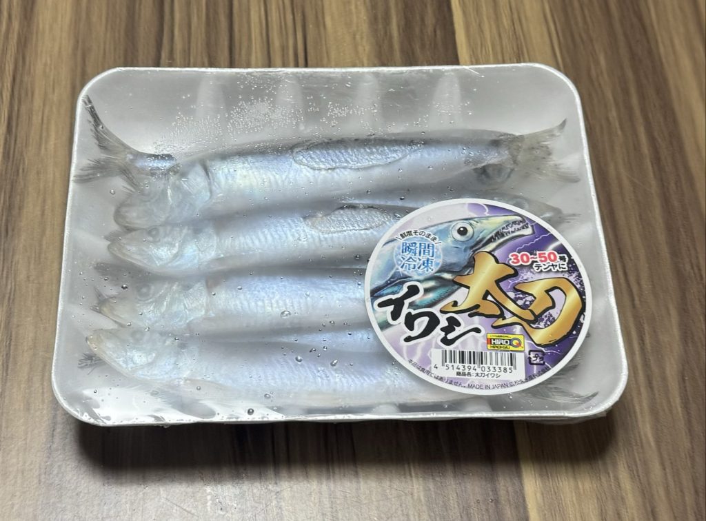 ※スーパーでイワシは、18cm前後 買って そのままもしくは、自分で作る (塩とうま味調味料を混ぜた後 冷凍する)